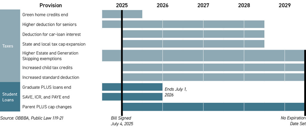 Take a look at these provisions under the OBBBA for taxes and student loans, and they’re respective expiration dates.